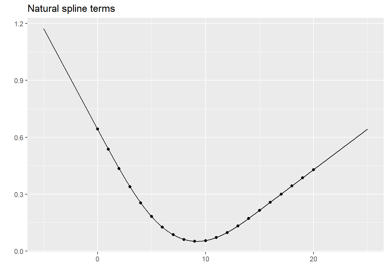 spline_dots display_curve(dat, "Natural spline terms") %>%