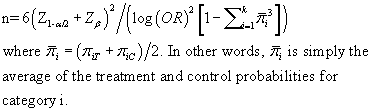 The formula for sample size with ordinal logistic regression is