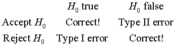 Sometimes our decisions will be correct and sometimes not. There are two possible errors, which we will call Type I and Type II errors, respectively.