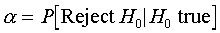 Alpha=P[Type I error] = P[Reject H0 | H0 true]
