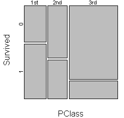Here is a mosaic plot looking at the relationship between passenger class and mortality.